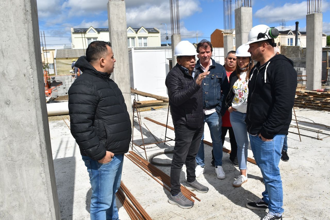 Durante la recorrida, el arquitecto Lucas Ignacio Farías, de la empresa constructora Huellas del Sur, brindó detalles del avance de la construcción que se inició a fines de julio y que ya cuenta con un avance en los cimientos y la colocación de las columnas, por lo que se estima que antes del invierno del año próximo se podrá comenzar con toda la construcción en seco.