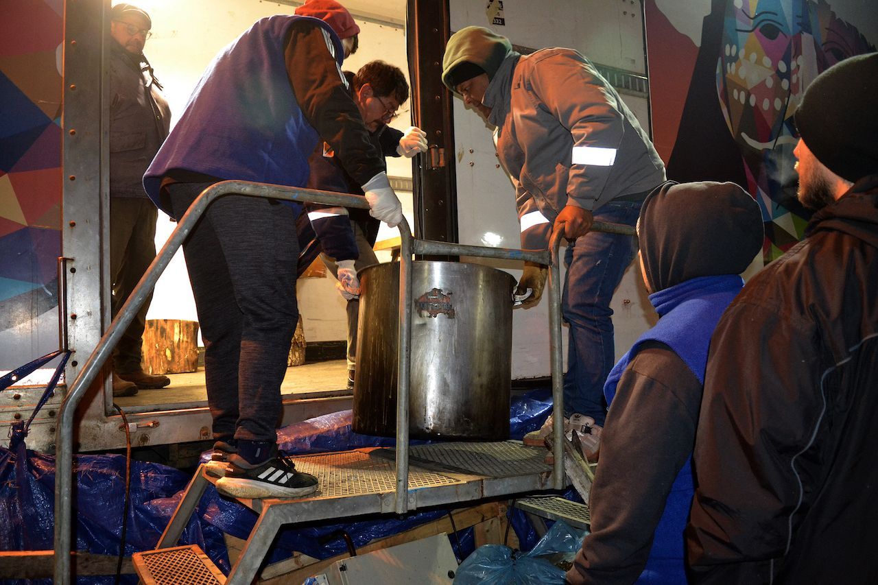 En cercanías a la Carpa de la Dignidad, el gremio de trabajadores petroleros instaló un lugar donde se ubican las ollas y las cocinas donde se procede a la cocción del locro. Este año, debido a la gran demanda que hubo en años anteriores, se resolvió sumar más porciones. De esa forma, de las 1800 que se entregaban, en promedio, este año se llegarán a unas 2300 porciones.