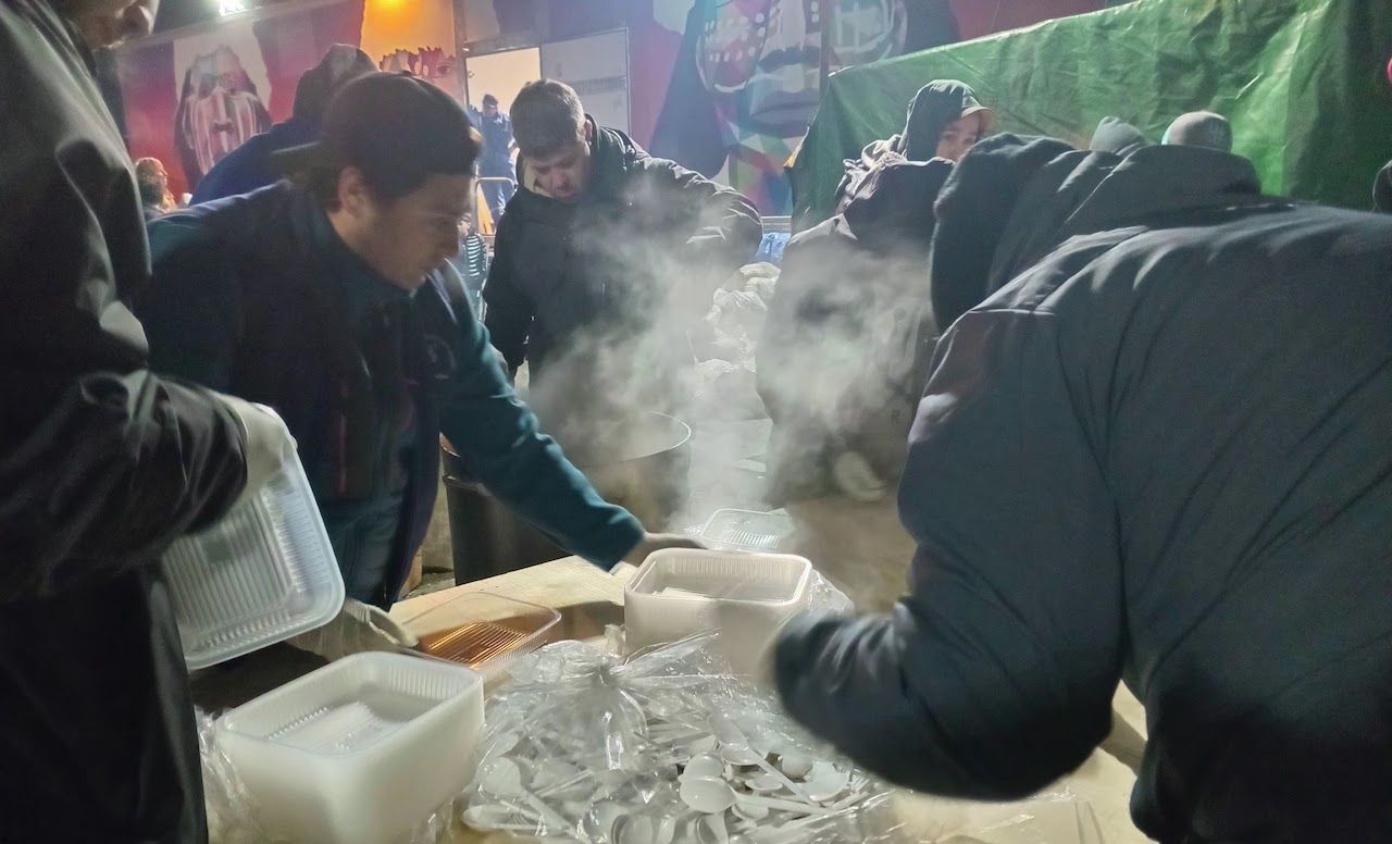 El delegado gremial, Víctor Espinoza, dijo que alrededor de 20 integrantes del sindicato, de manera voluntaria colaboran en la elaboración del locro. Desde el lunes iniciaron con la cocción de parte de los ingredientes y este martes, en horas de la noche, se termina de cocinar en su totalidad para ser repartidos calentitos y de esa manera, hacer frente al frío que es característico en esta altura del año.